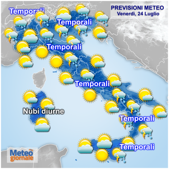 Domani farà ancora caldo, tant’è i termometri potrebbero scavallare la soglia dei 35°C in varie città d’Italia. Ciò nonostante, avremo delle diminuzione termiche importanti, diminuzioni che risulteranno pronunciate – anche se temporanee – laddove si abbatteranno i temporali. L’instabilità diurna continuerà a produrre intense precipitazioni temporalesche su tutti i principali rilievi, ma avremo anche degli sconfinamenti in Val Padana e sulle coste del Centro Sud. Occhio alle grandinate e ai colpi di vento.