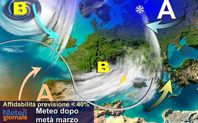 TREND METEO DOPO META’ MARZO, CONTINUA VARIABILITA’– La dinamicità continuerà a caratterizzare il meteo di quest’avvio di primavera. La circolazione di bassa pressione mediterranea, alimentata da aria più fredda, potrebbe poi essere agganciata da ingerenze d’aria più mite di provenienza nord-atlantica. Ciò determinerebbe l’arrivo di nuove perturbazioni verso il 18/20 marzo sul Mediterraneo, che però si alternerebbero a fasi più miti anticicloniche, un po’ lo scenario a cui abbiamo assistito ad inizio mese. Nel complesso, è atteso un rialzo termico dopo la temporanea fase più fredda di metà mese. Chiaramente questa tendenza delineata per dopo metà mese andrà confermata e potrà subire grosse variazioni, alla luce delle divergenze fra i centri meteo di calcolo e tenuto conto della elevata distanza temporale.