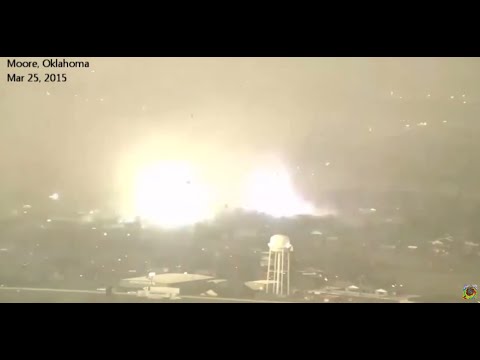 Immagini impressionanti, che testimoniano la furia devastante di uno dei tanti tornado abbattutisi in Oklahoma mercoledì 25 marzo. Si vedono chiaramente le linee elettriche saltare come birilli e produrre infiniti flash.