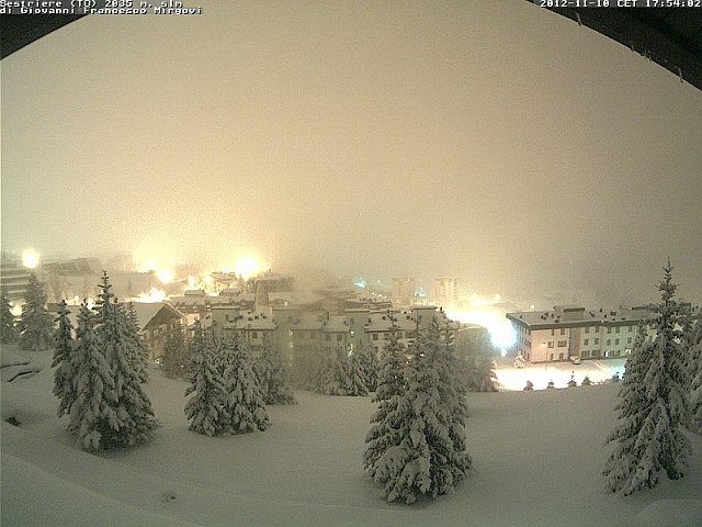 Come vi abbiamo riportato nelle cronache odierne, la neve è caduta copiosa sulle Alpi Occidentali, anche a quote un po’ più basse di quanto preventivato, fino localmente attorno ai 1500 metri. Vale la pena di apprezzare una fantastica panoramica di Sestriere (fonte www.meteo-system.com), a 2000 metri di quota, con paesaggio completamente ovattato dall’abbondante nevicata.