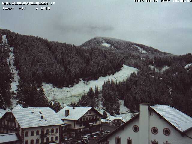 Sono state così imbiancate da un discreto strato bianco alcune località poste persino sotto i 1500 metri, fra cui Selva di Val Gardena e Santa Cristina di Val Gardena, che si è svegliata sotto questa veste come possiamo ammirare osservando sotto l’immagine webcam che sembra una cartolina invernale (fonte www.alpenhotelplaza.it)