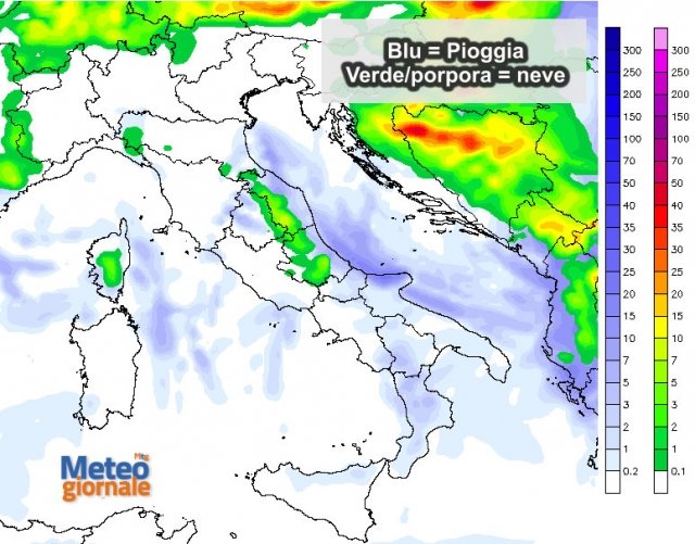 In realtà abbiamo già assistito a delle nevicate fin verso i 1000 metri, soprattutto tra Marche e Abruzzo. Ma siamo appena all’inizio, all’inizio di un vero e proprio colpo di coda invernale che investirà un po’ tutte le regioni. A prescindere dalle precipitazioni. La mappa che vi proponiamo ci dà un’idea di quella che potrebbe essere l’evoluzione dei fenomeni nel corso della giornata odierna, in particolare è interessante evidenziare come le nevicate coinvolgeranno i confini alpini e la dorsale appenninica centrale.