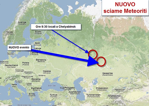 ORE 14:50. Lo sciame di meteoriti potrebbe essere riconducibile a quello degli Urali. Attendiamo sviluppi che comunicheremo.