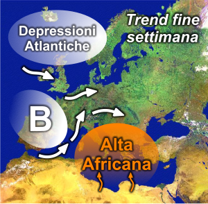 quanto scritto pocanzi potrebbe indurre un certo timore, lasciando supporre una durata maggiore dell’ondata di caldo. Timori infondati, perché se è vero che farà caldo, è altrettanto vero che l’apice verrà raggiunto in concomitanza del pre-frontale. Ma che significa? Semplice. Che il promontorio anticiclonico verrà “sparato” sull’Italia da un affondo perturbato sull’Europa occidentale, perturbazione che in seguito raggiungerà anche l’Italia causando un peggioramento e decretando la fine dell’appendice estiva.