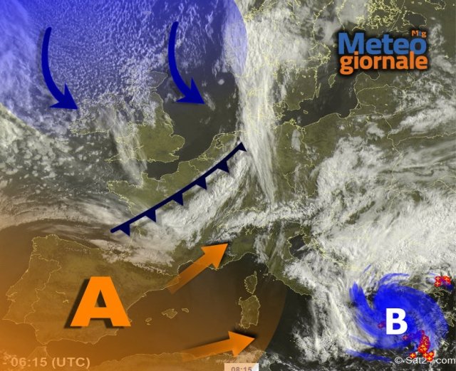 Fonte immagine Sat24, rielaborazione grafica a cura della Redazione del Meteo Giornale.